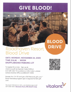 The Activities Director at Roadhaven Resort plays a pivotal role in curating a diverse range of activities catering to the interests of residents. The Activities Office closes each Summer and returns in October.