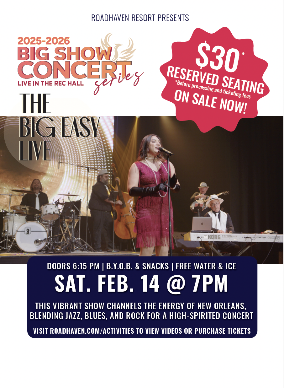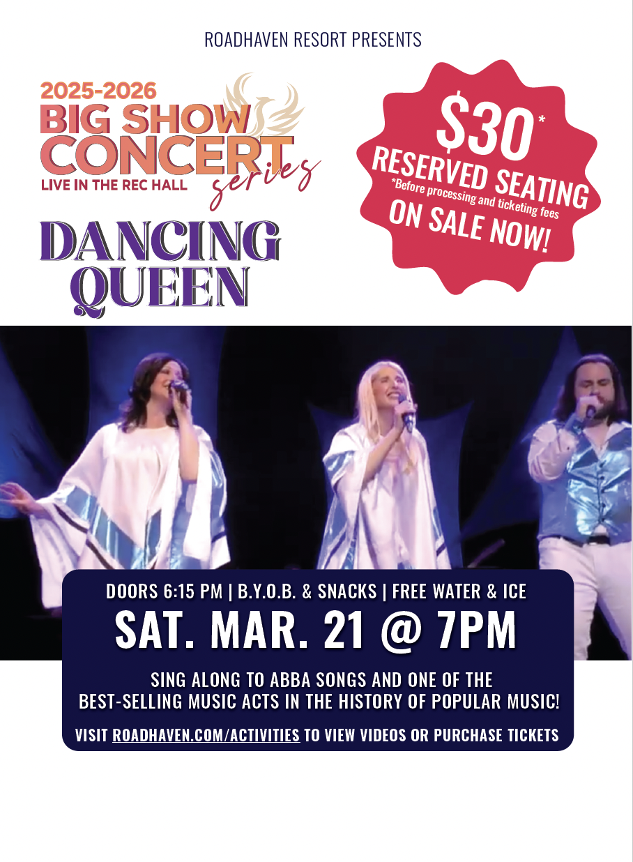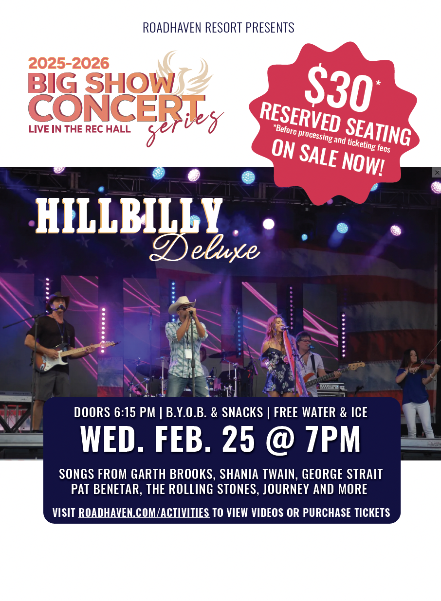 The Big Easy Live, Hilly Billy Deluxe, Ultimate Chicago & ABBA Dancing Queen concerts in our Big Show Series are on sale now! Purchase tickets online through the Activities page or in the Activities Office. Tickets are $32.64. There are still great seats still available, so don’t miss out! Activities events are now on sale and online. Tickets are $12
