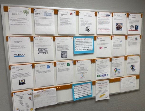 Introduction to Facebook, Cloud-Based Services, iPad/iPhone Tips and Tricks, iPad Maintenance, Ducks in a Row, Social Media, Windows 11, Facebook Security Settings, Streaming Media, Windows File Management, Android and Apple Phones, iPhone Camera, Security Cameras, Photos 1, 2, 3 and 4, Google Chrome, Uber/Lyft, Chat GPT, Google Calendar, Gmail, Roadhaven Facebook Marketplace, Basic Computing, Shutterfly, One Note, Genealogy, Apple Watch, Shortcuts, Passwords, Google Home, Google Assistant, Google Docs/Sheets, Financial Literacy, Mobile Apps (iPhone and Apple) and Chromebook.