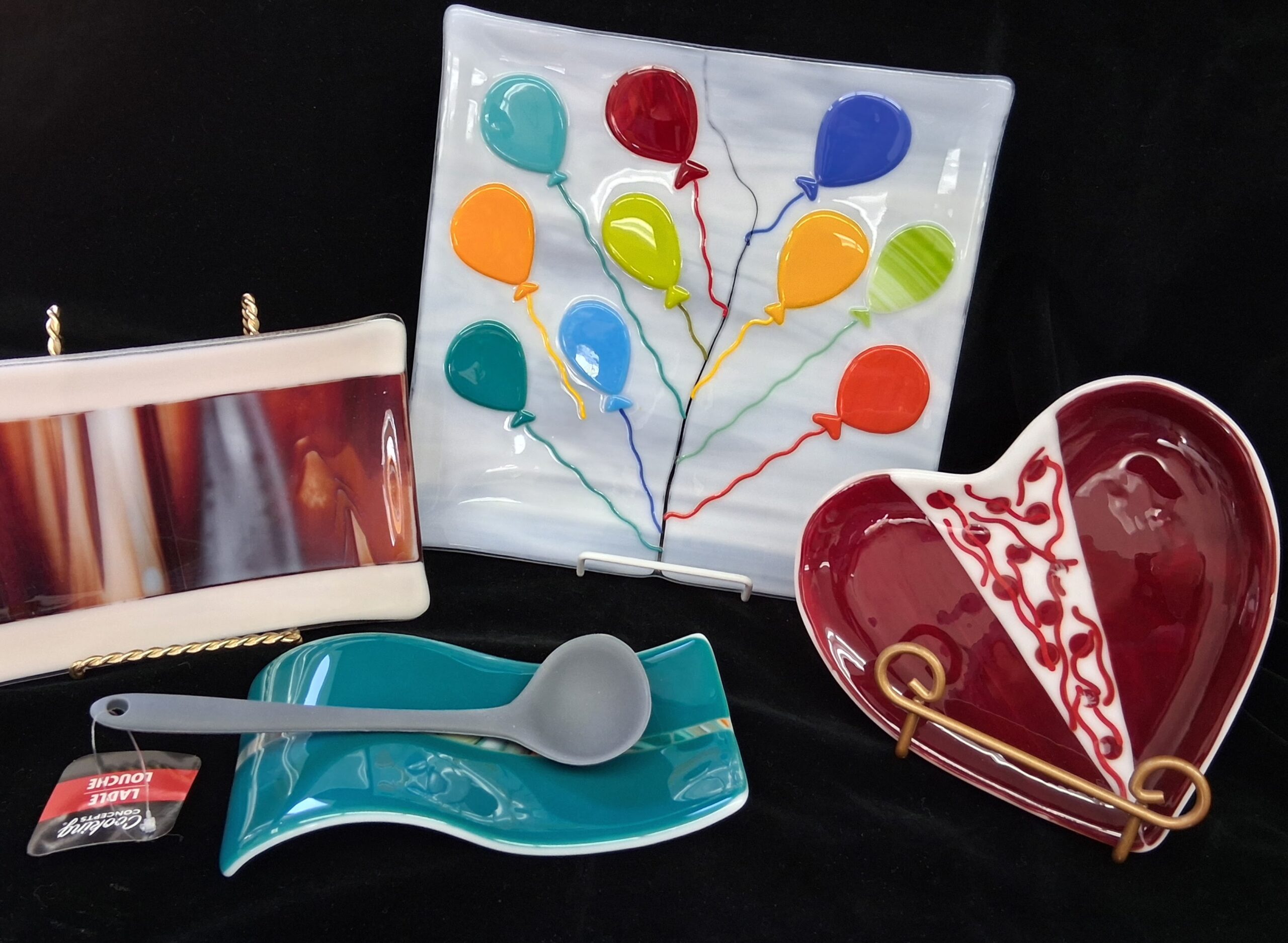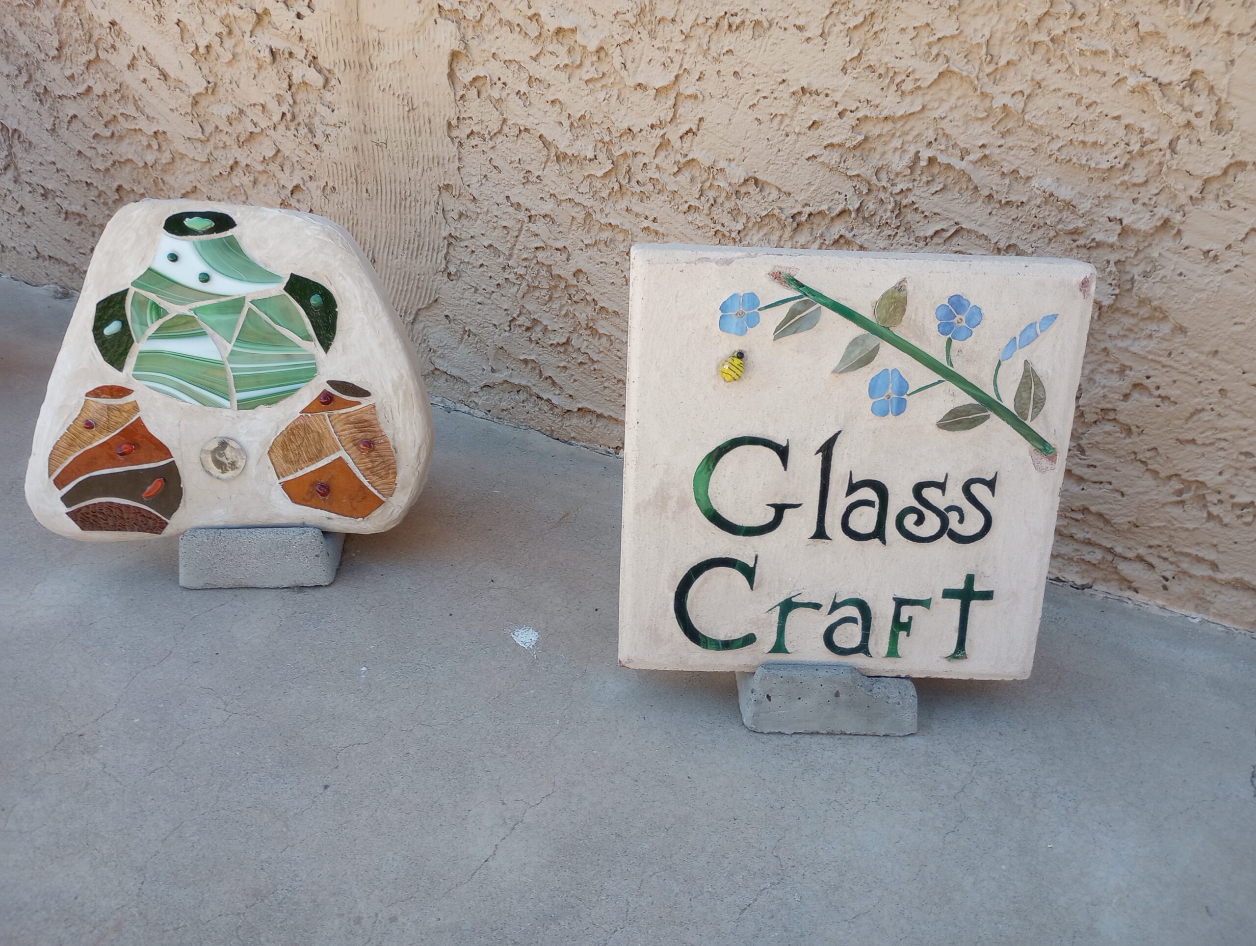 Other members create fused glass items in the kilns. Glass stepping stones can also be created. Classes and use of the equipment are available to members.