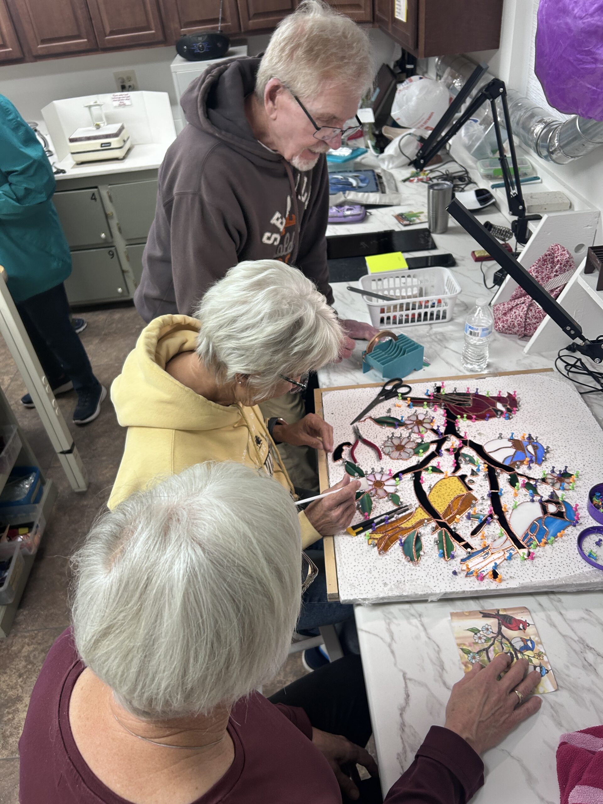 A visit to the Glass Crafters shop will introduce you to a variety of glass projects and styles. Members enjoy creating stained glass window art and suncatchers.