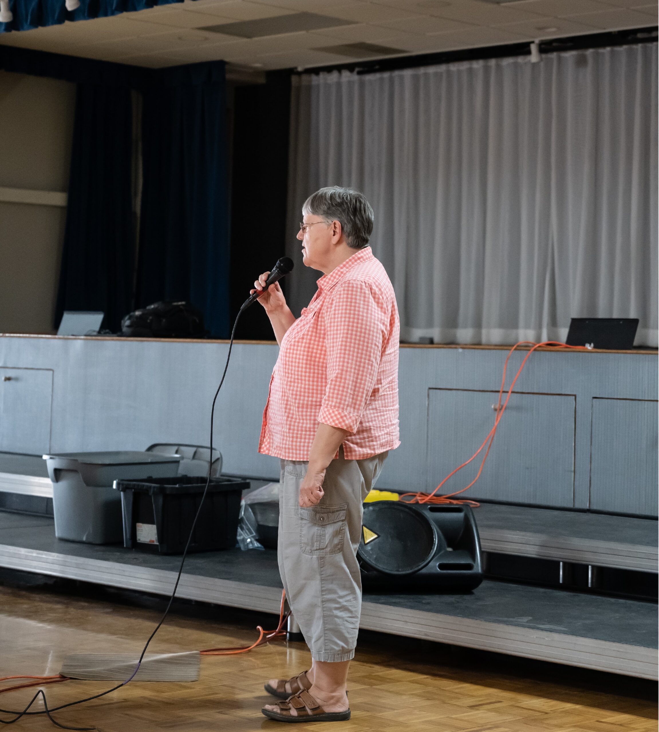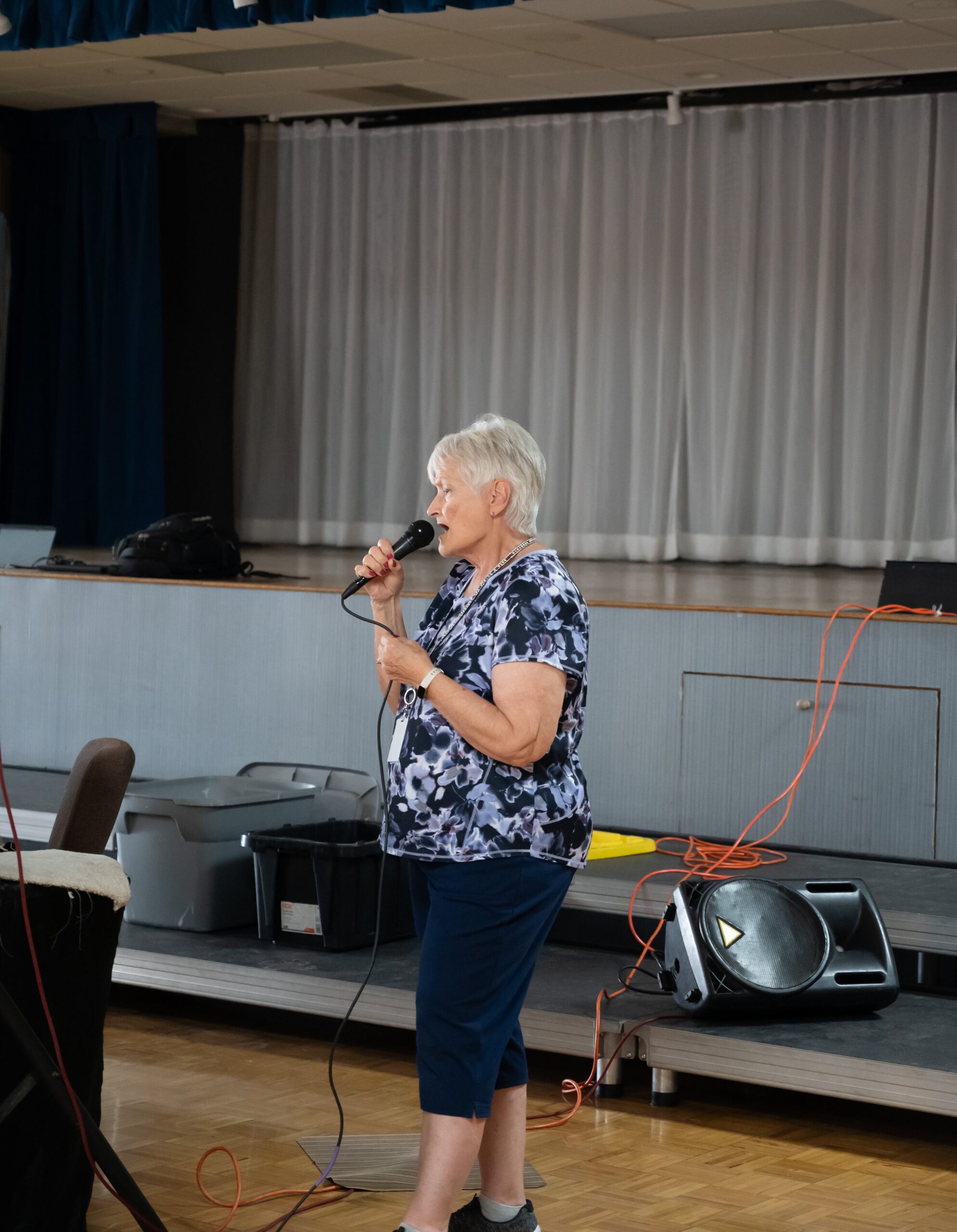 All are encouraged to sing. There is no judgment, only encouragement. If you want others who may know your song will sing along as encouragement and support. Our MC, Gene, will sing along and provide sound support and suggestions.